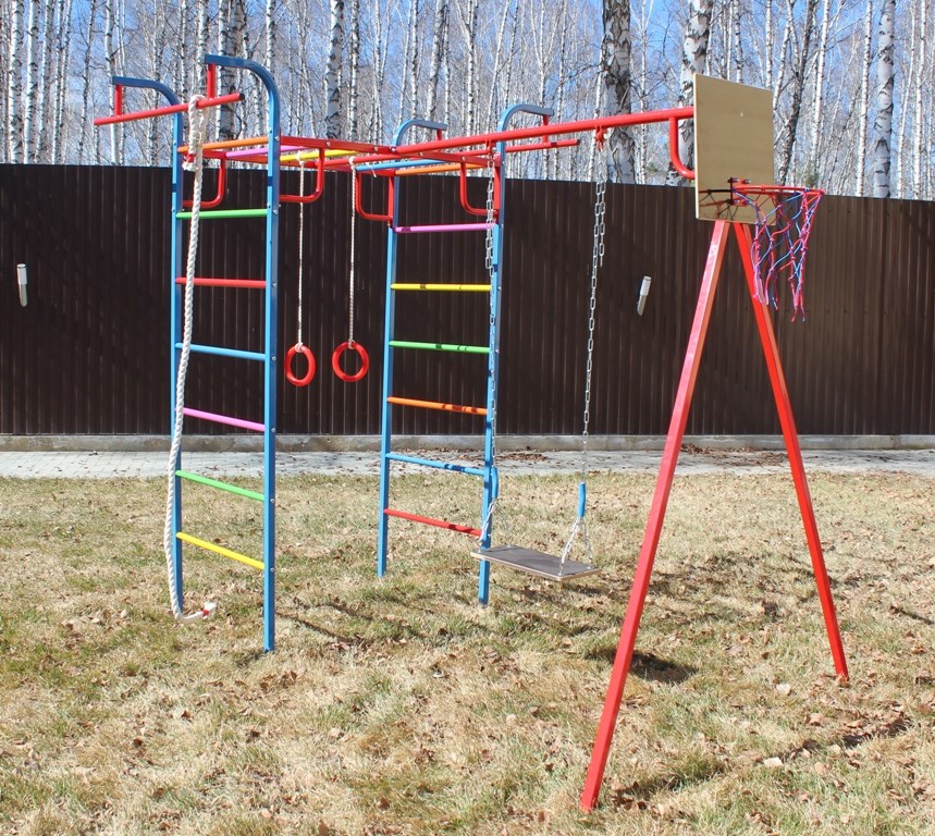 Комплектация ДСКкачели, рукоход, турник, канат, кольца, кольцо баскетбольное