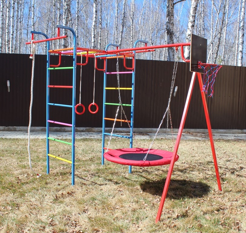 Комплектация ДСКкачели-гнездо, рукоход, кольцо баскетбольное, турник, канат, кольца